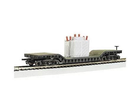 The Bachmann HO Scale 52′ Center-Depressed Flat Car with Transformer, a detailed model of the impressive train car, with die-cast features. The undercarriage, interior and exterior have all been made with attention to detail, with text printed down the side for scale authenticity. This train best performs on a 22″ radius curves or greater.  Â