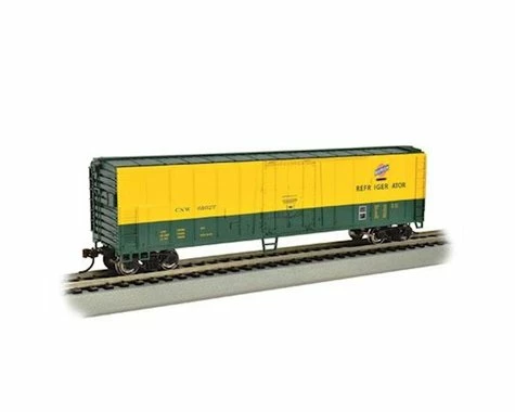 The Bachmann N Scale Chicago & Northwestern ACF 50′ Steel Reefer, a detailed model of the impressive train car, with die-cast features. The undercarriage, interior and exterior have all been made with attention to detail, with text printed down the side for scale authenticity. This train best performs on a 22″ radius curves or greater. Â