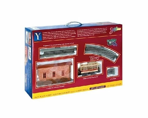 This is the Bachmann On30 Scale Christmas Street Car Set. Our Village Street Car Set features an electronic auto-reversing E-Z Track® system that’s the perfect solution for point-to-point passenger transit on your layout. With a variable speed controller to determine the rate of travel, you can enjoy the ride while your town or city comes to life!
