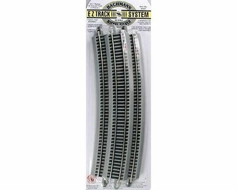 This is a pack of five HO Scale Bachmann E-Z 35-1/2″ Radius 18 Degree Curve. Five pieces of track make up one-quarter (90 degrees) of a 71″ diameter circle (a full circle is 360 degrees). In general, 35.5″ Radius Curved Track is best used to make wide, sweeping railroad curves to accomodate longer locomotives and rolling stock, and permit mainline operation at higher speeds. It can be placed on the outside of 33.25″ radius curved track for excellent double-track mainline realism, and it can also be used to quickly lay track on a behind-the-scenes helix.