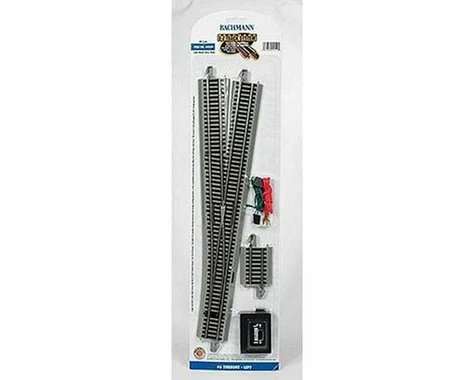 This is a HO Scale Bachmann E-Z #6 Left-Hand Turnout. Longer and with a wider radius turnout than the E-Z Track Remote Switch – Left, the #6 Turnout – Left allows for smoother transitions between tracks during switching operations. It also accommodates locomotives and rolling stock with longer wheel bases.This turnout is electrically gapped to meet the DCC specifications of the National Model Railroad Association (NMRA).