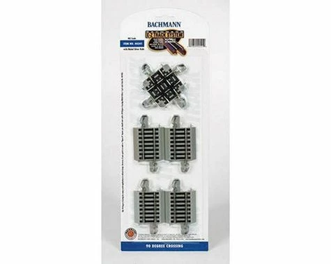 This is a HO Scale Bachmann E-Z Track Nickel Silver 90° Crossing. The 90 Degree Crossing has many useful applications in railroad design. However, if your goal is to make a “Figure 8” layout, you should start with a 30 Degree Crossing.