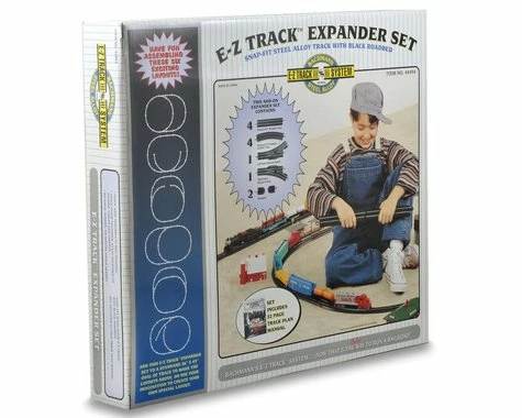 This is a HO Scale Bachmann E-Z Track Steel Alloy Expander Set. With the E-Z Track® Expander Set, you can add to the track included with our train sets or create new configurations of turnouts, branchlines, and double-track mainlines on your existing railroad. Also, a handy track plan manual included with the Expander Set contains ideas to inspire railroad tycoons of all ages. Offered in steel alloy (with black roadbed) or nickel silver (with gray roadbed) versions.