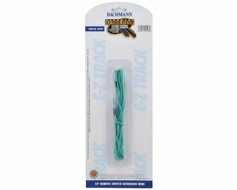 This is an All Scale Bachmann E-Z Track Switch Extension Wire. The 10′ Remote Switch Extension Wire is used to make plug-in connections from your Bachmann switch controller to an E-Z Track switch (track turnout). Its ample length and ability to be plugged together in a series with additional 10′ extension wires to make longer connections eliminate the need to splice and solder switch wires. The Wire Gauge is AWG28.