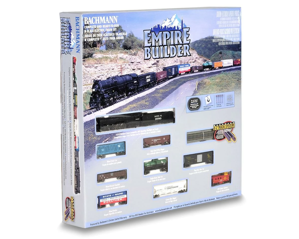 This is the Bachmann N-Scale Empire Builder Train Set. American railroads helped build great fortunes and the wealth of the Nation. Doing its part, the Empire Builder train set comes complete with Bachmann‘s exclusive E-Z Track® snap-fit track and roadbed system.