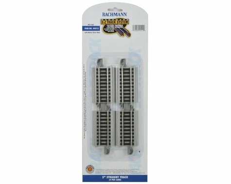This is a pack of four Bachmann HO-Scale E-Z Track Nickel Silver 3″ Straights.This nickel silver alloy track with gray roadbed will provide 12” of railroad. Nickel-Silver rails provide better conductivity and improved rust resistance. These are designed to provide layout flexibility and can also be used as gap fillers in more sophisticated railroad construction.
