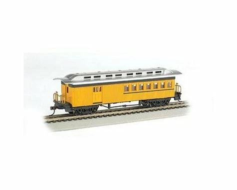 This is a Bachmann HO Scale Yellow Painted Unlettered 1860-1880’s Era Combine, a detailed scale model train car.