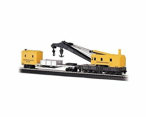The Bachmann HO Scale Pennsylvania 250-Ton Steam Crane & Boom Tender, a detailed model of the impressive steam crane and boom, with die-cast features. The undercarriage, interior and exterior have all been made with attention to detail, with text printed down the side for scale authenticity. This train best performs on a 22″ radius curves or greater. Crane swivels 360 degrees. Removable knob included for adjusting boom position.Â