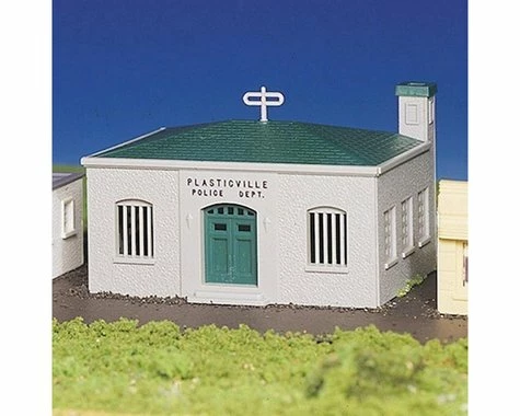 This is an HO Scale Bachmann Police Station. Since 1947, hobbyists and collectors have made Plasticville U.S.A. products their structures of choice, adding character and dimension to layouts in HO, O, and N scale.