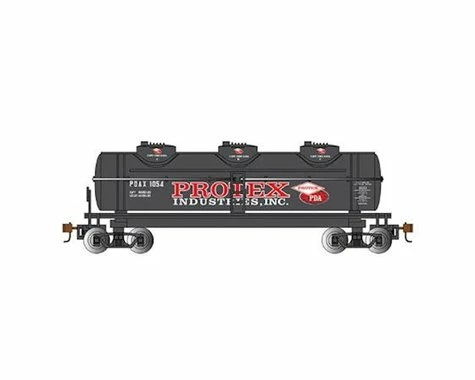 The Bachmann HO Scale Protex Industries 40′ Three Dome Tank Car, a detailed model of the impressive train car, with die-cast features. The undercarriage, interior and exterior have all been made with attention to detail, with text printed down the side for scale authenticity. This train best performs on a 22″ radius curves or greater. Â