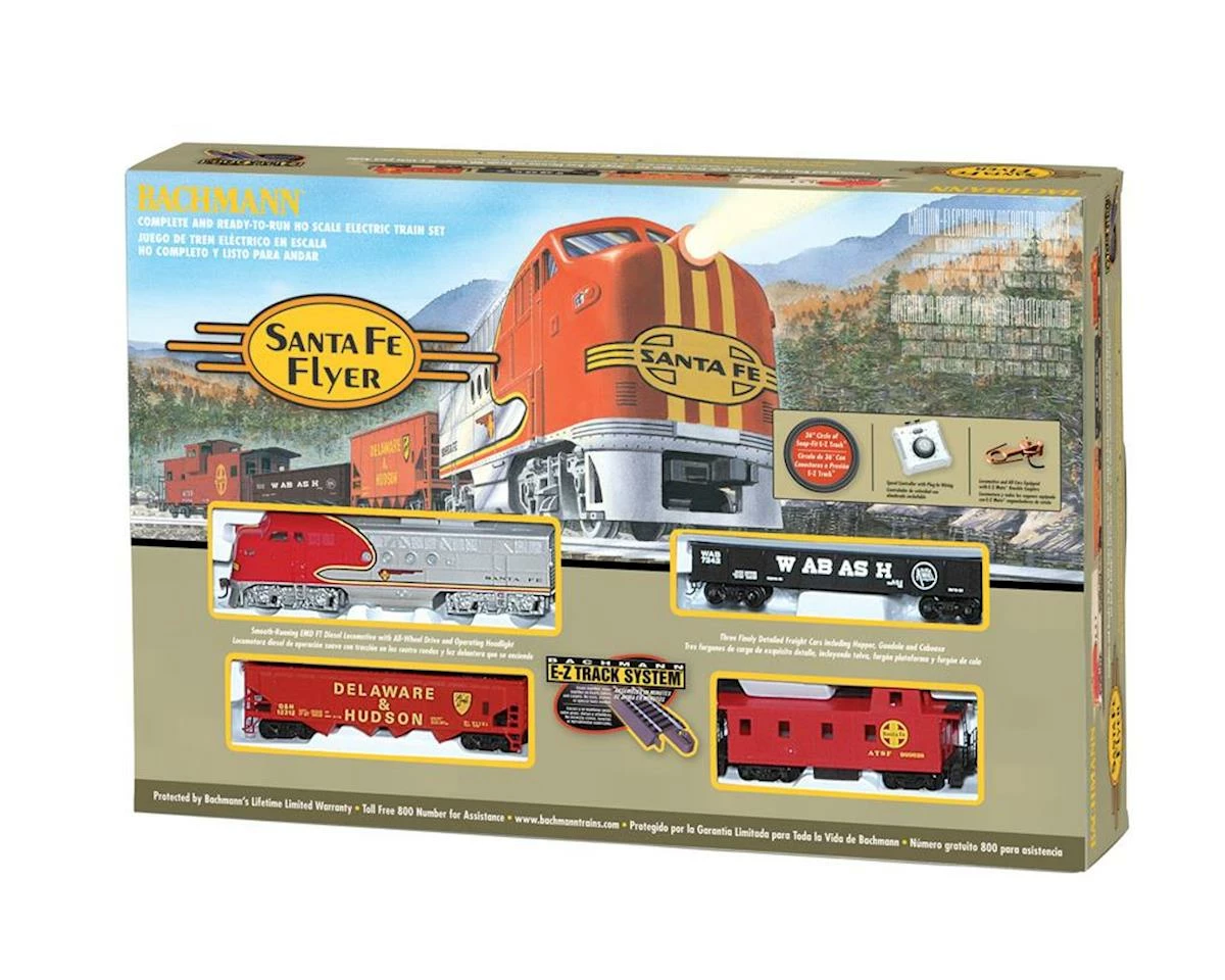 Hauling freight across the deserts, mountains, and cities of the American landscape is the Santa Fe Flyer. Powered by a mighty Santa Fe FT diesel locomotive with its distinctive “warbonnet” paint scheme, this sleek and powerful train deftly handles the ever-changing terrain of the Southwest United States.