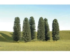 This is a pack of six Bachmann Scenescapes 5-6″ Cedar Trees. Bring your urban or countryside railroad to life with realistic SceneScapes trees by Bachmann. Create your own orchard or blanket a hillside in dense forest with deciduous and coniferous trees offered in a variety of sizes. Suitable for all scales, but most commonly used with HO layouts.