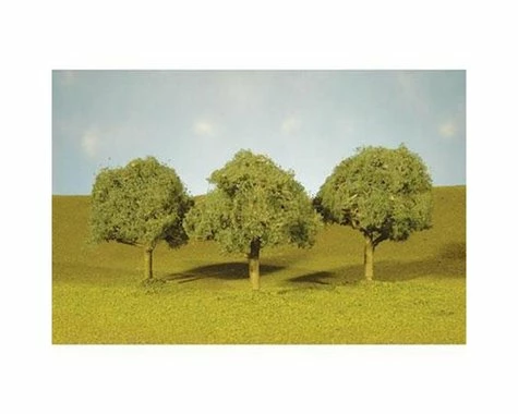 This is a pack of two Bachmann 4.5-5″ Scenescapes Oak Trees. Bring your urban or countryside railroad to life with realistic SceneScapes trees by Bachmann. Create your own orchard or blanket a hillside in dense forest with deciduous and coniferous trees offered in a variety of sizes. Suitable for all scales, but most commonly used in O Scale.