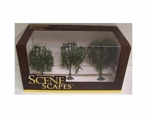 This is a pack of three Bachmann 3-3.5″ Scenescapes Willow Trees. Bring your urban or countryside railroad to life with realistic SceneScapes trees by Bachmann. Create your own orchard or blanket a hillside in dense forest with deciduous and coniferous trees offered in a variety of sizes. Suitable for all scales, but most commonly used in HO; (three pieces per pack)