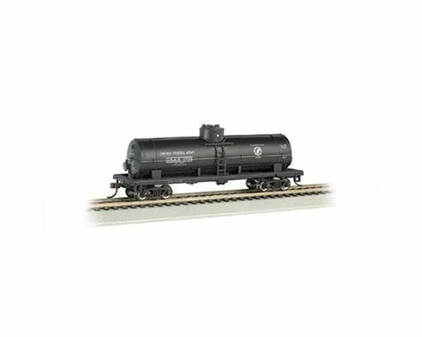 The Bachmann HO Scale US Army 40′ Single Dome Tank Car, a detailed model of the impressive train car, with die-cast features. The undercarriage, interior and exterior have all been made with attention to detail, with text printed down the side for scale authenticity. This train best performs on a 22″ radius curves or greater. Â